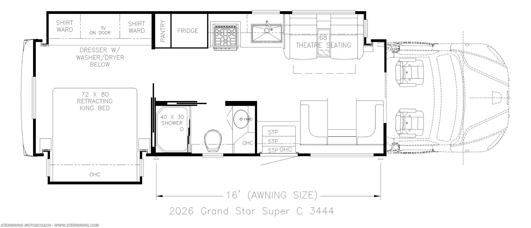 CALL FOR MORE INFOMATION! STEINBRING MOTORCOACH HAS A GRAND STAR AVAILABLE NOW ON THE LOT READY FOR IMMEDIATE DELIVERY!